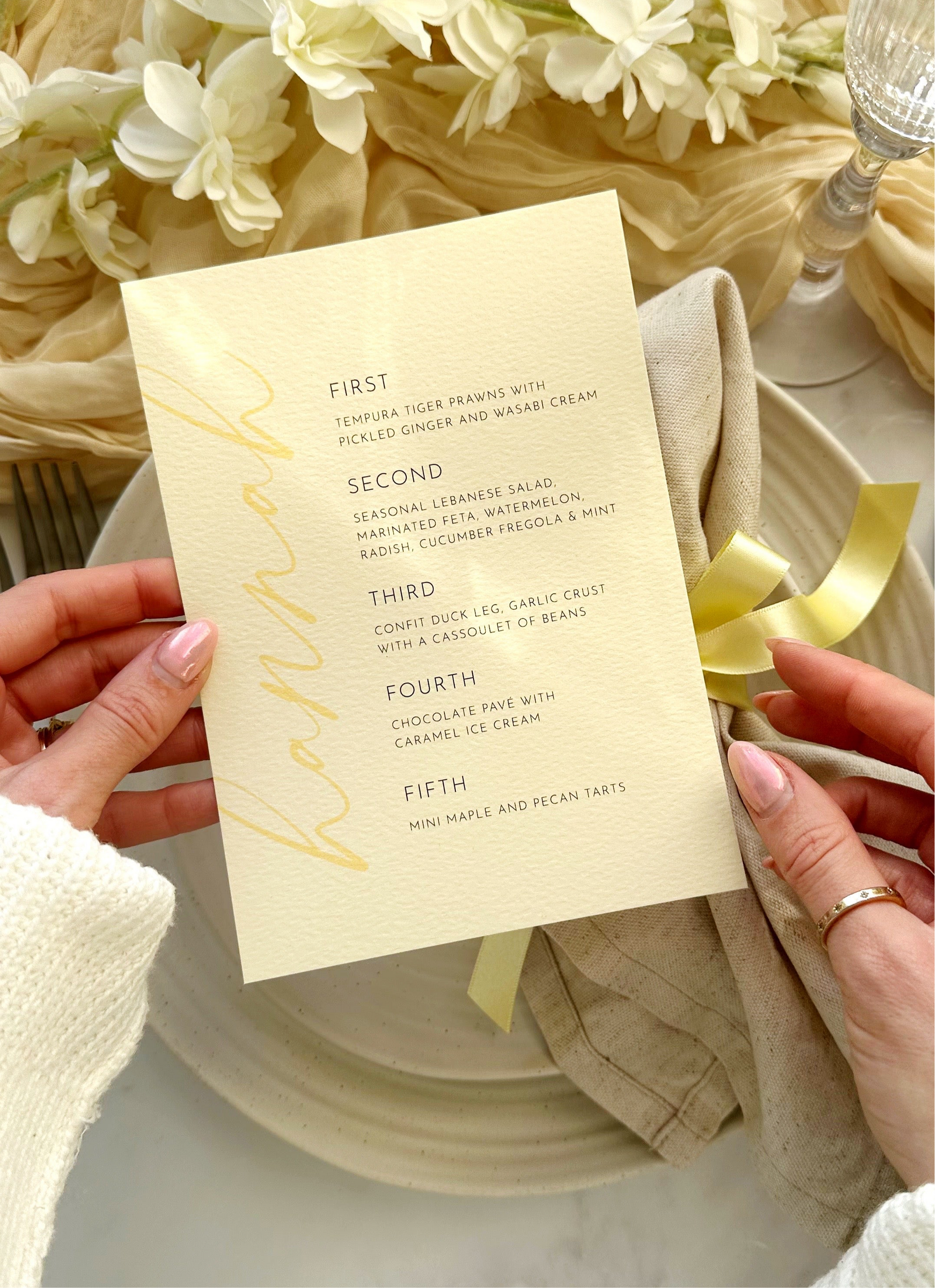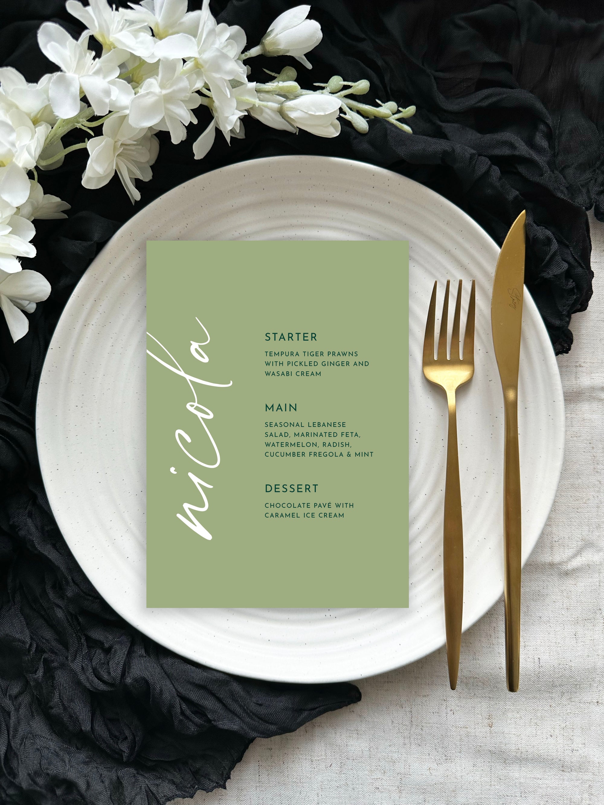 Includes personalisation of your menu with your menu (either a set menu or personalised menus per guest) and guest names.