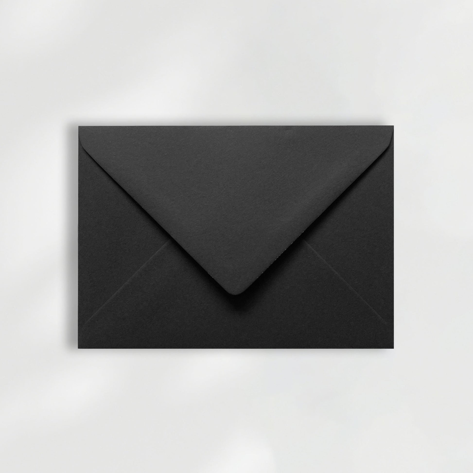 Perfect for wedding stationery and greetings cards, our Black envelopes feature a gummed seal and are available in four sizes. Paper weight 135gsm.