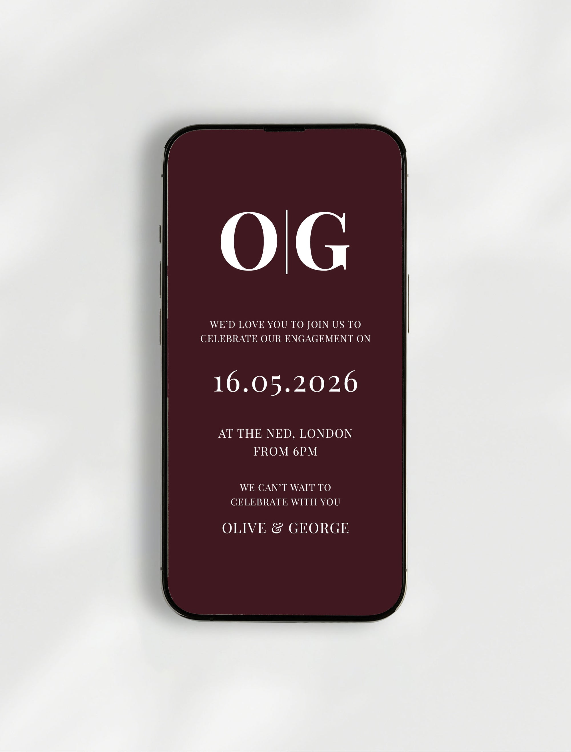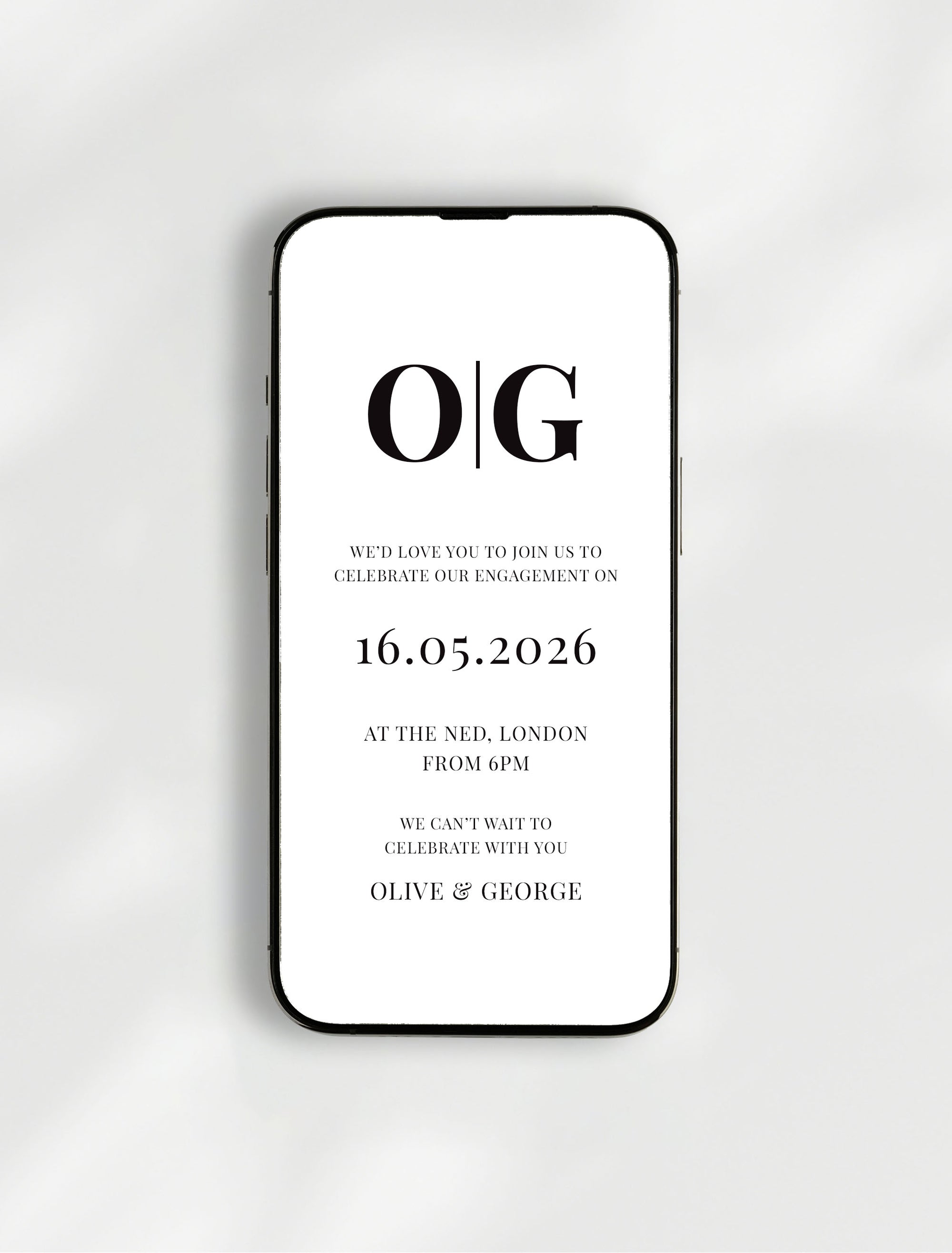 Calling all DIY couples! If you’re looking for a stylish and modern way to announce your engagement party, our editable digital invitation template is perfect for you. Featuring a timeless design and fully customisable layout, you can personalise every detail in minutes. Edit directly from your phone or desktop (no design skills needed) using an easy online editor. Personalise colours, wording and the layout to suit your wedding style, then download and send via WhatsApp, email or text.