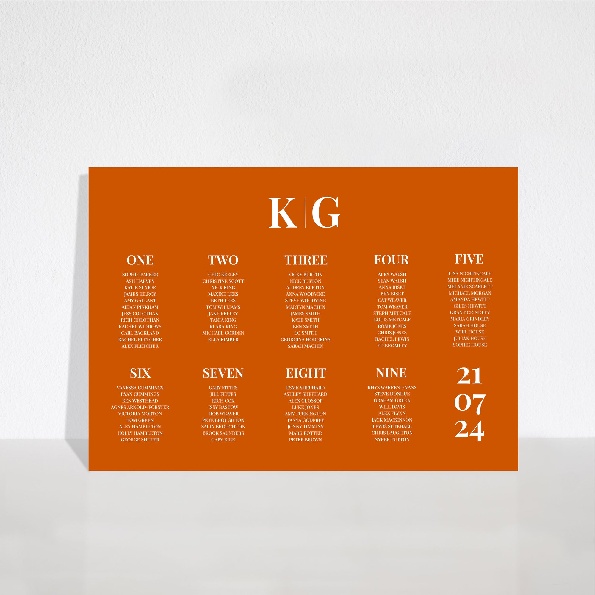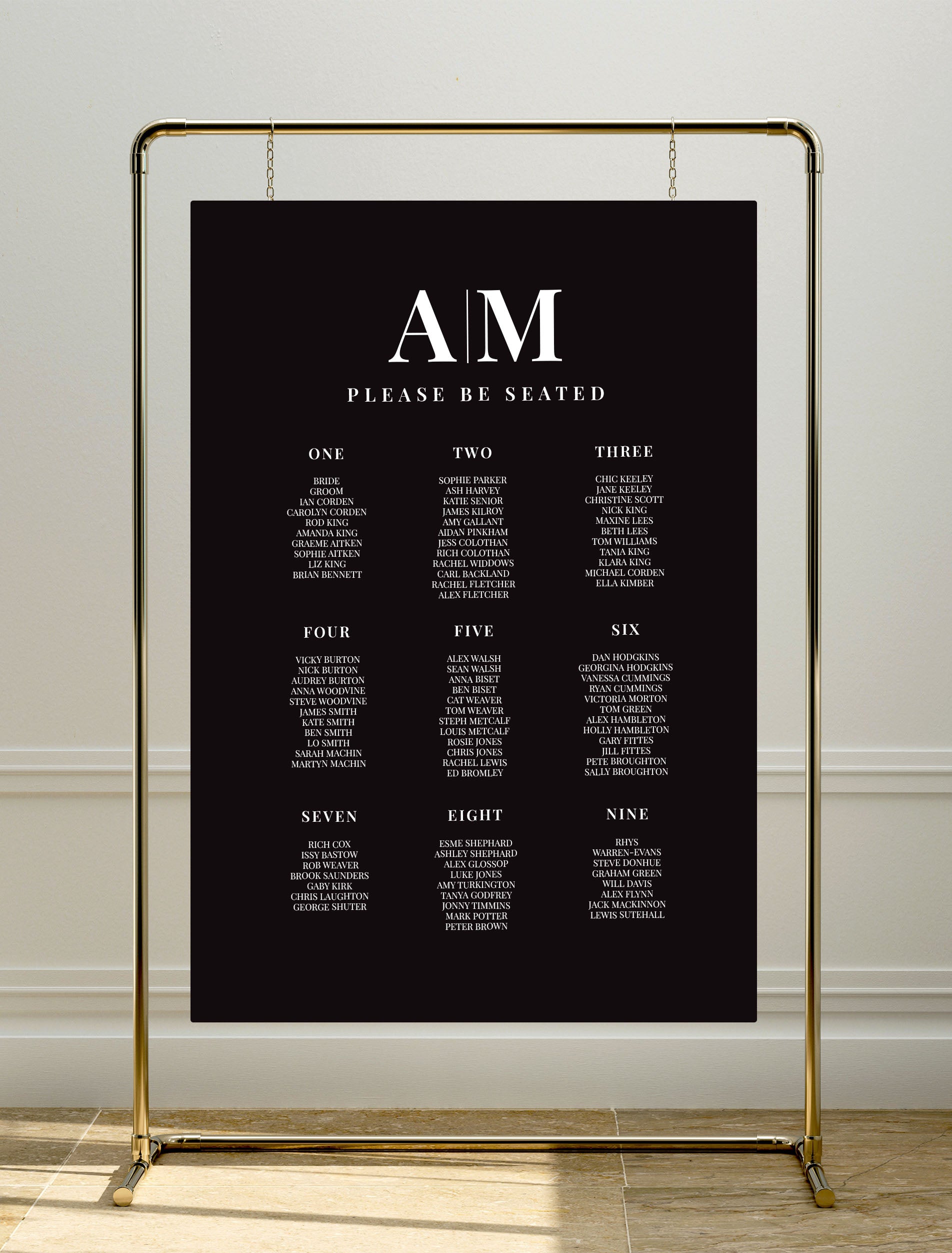 A1 = 59.4cm x 84.1cm / 23.4” x 33.1” (best for eight to twelve tables or 70 to 120 guests)