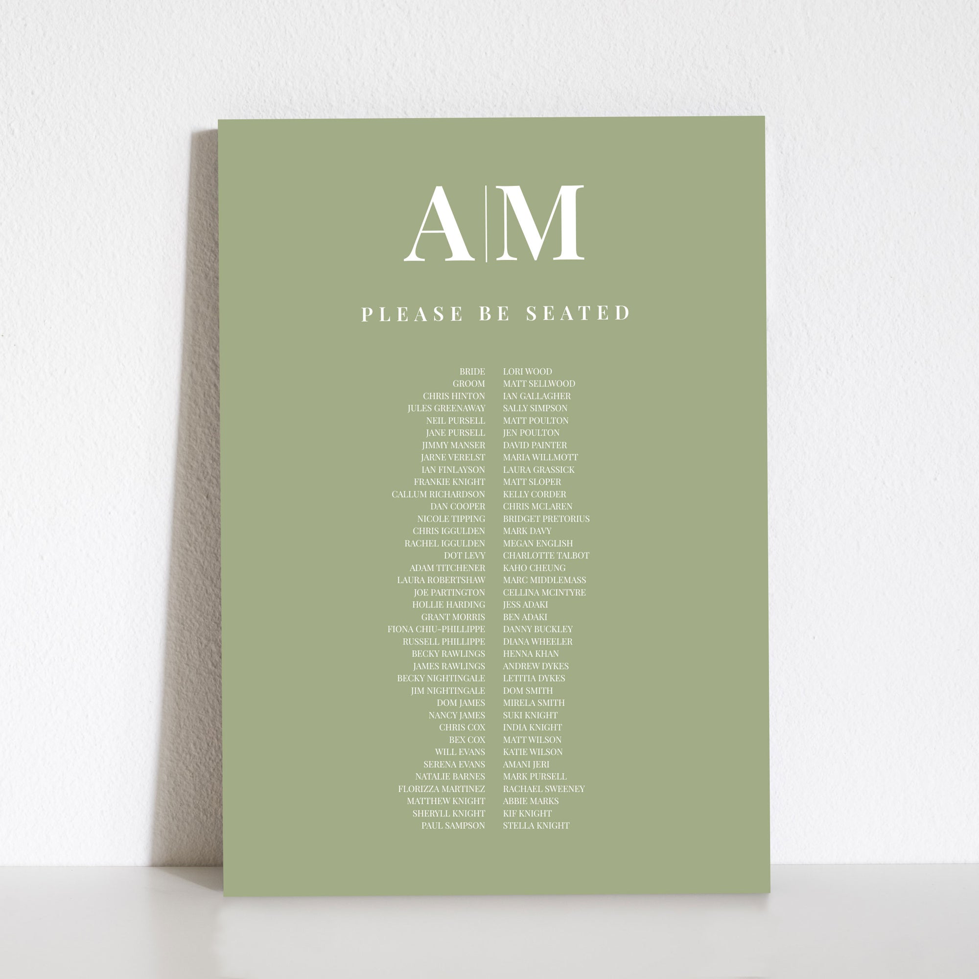 A0 = 84.1cm x 118.9cm / 33.1” x 46.8” (best for more than twelve tables or 120 guests)