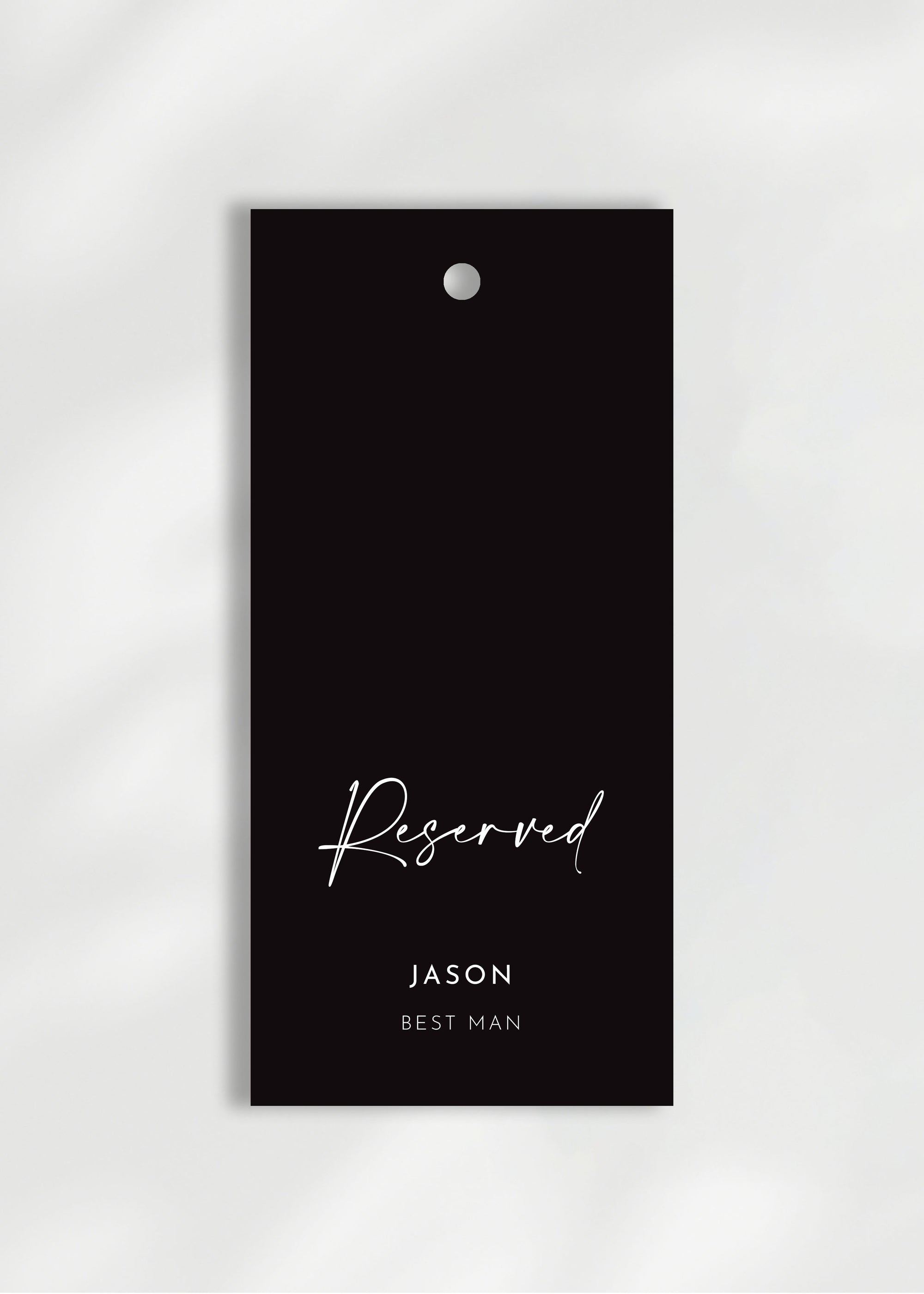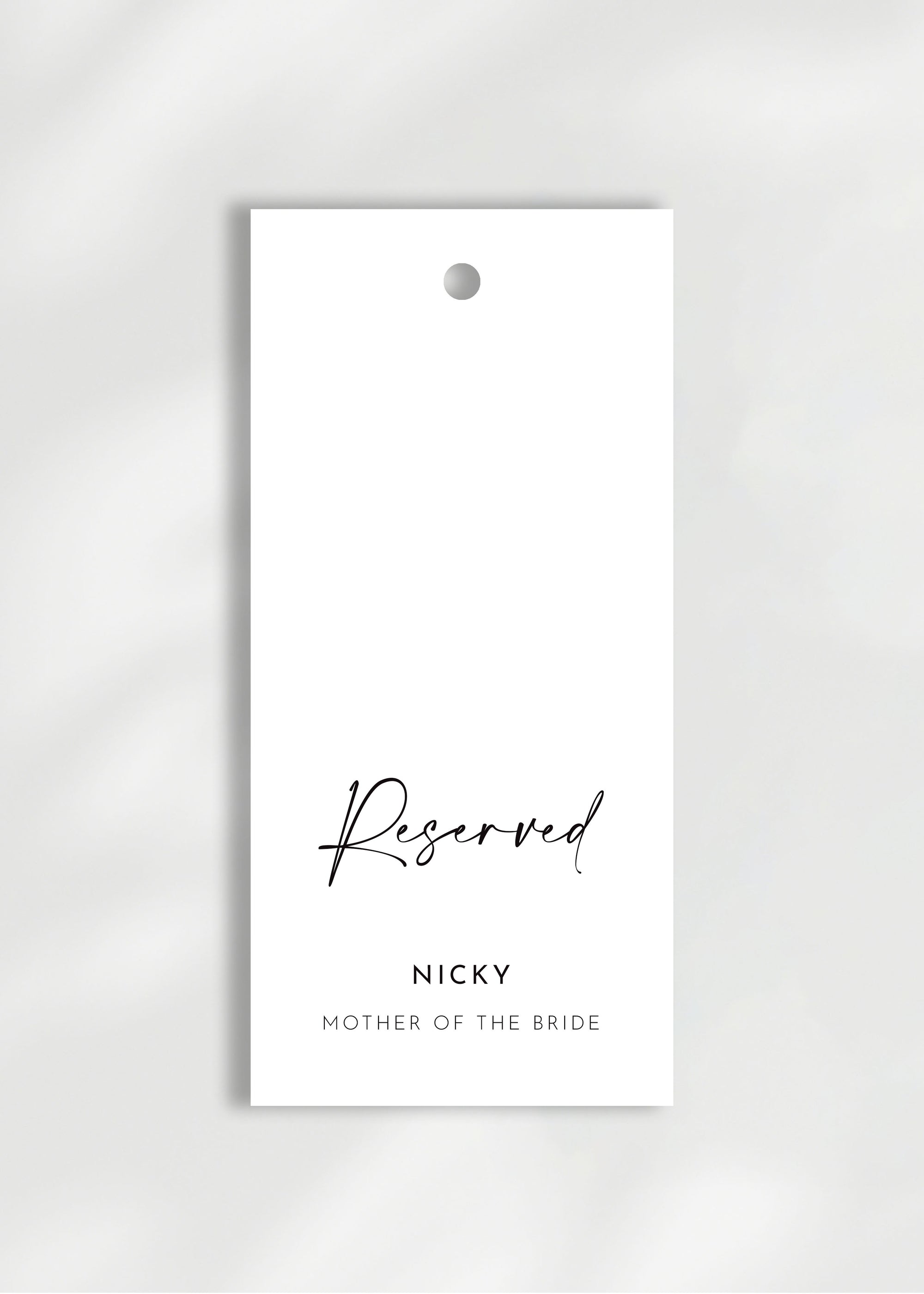 Ensure your ceremony seating is perfectly organised with our personalised reserved ceremony seat tags. Printed on our signature 300gsm textured card, these elegant tags are designed to be tied to chairs with ribbon, reserving special seats for the wedding party. A must-have for any well-coordinated wedding, these seat tags add a sophisticated touch while ensuring your guests know exactly where to sit.
