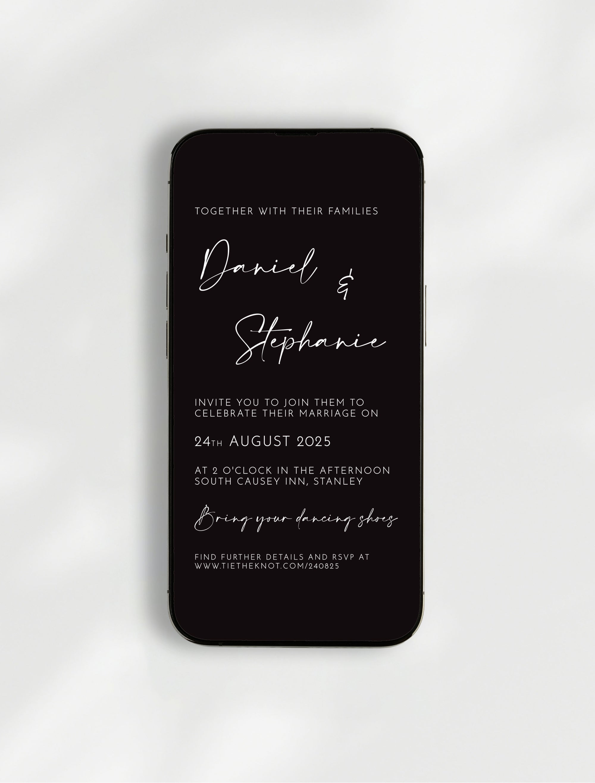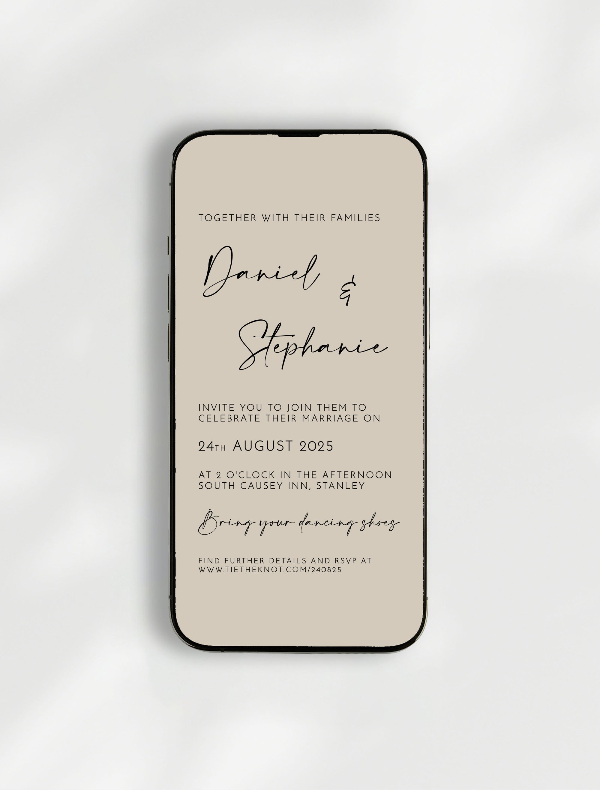 Calling all DIY couples! If you’re looking for a stylish and modern way to announce your wedding day, our editable digital invitation template is perfect for you. Featuring a timeless design and fully customisable layout, you can personalise every detail in minutes. Edit directly from your phone or desktop (no design skills needed) using an easy online editor. Personalise colours, wording and the layout to suit your wedding style, then download and send via WhatsApp, email or text.
