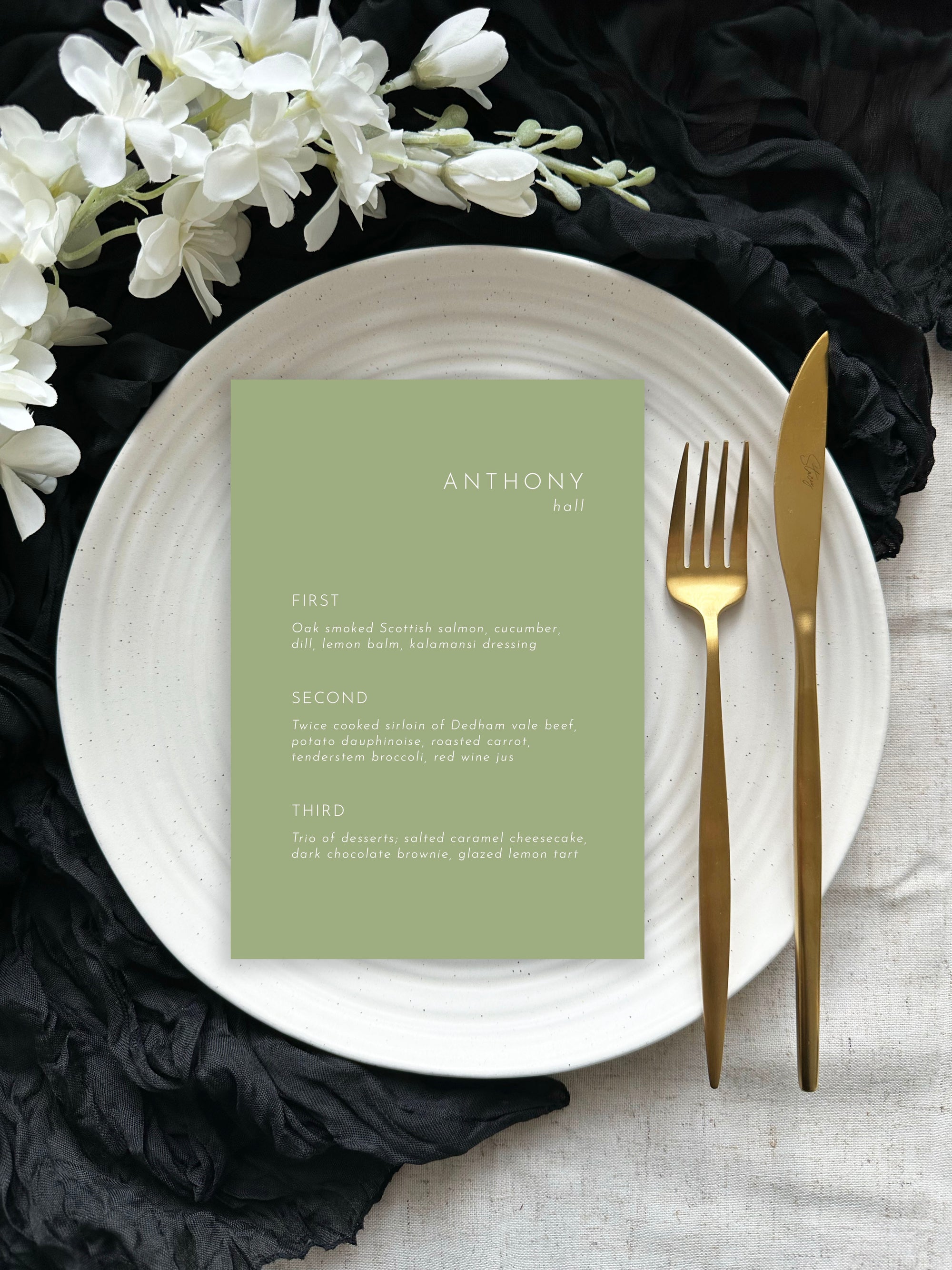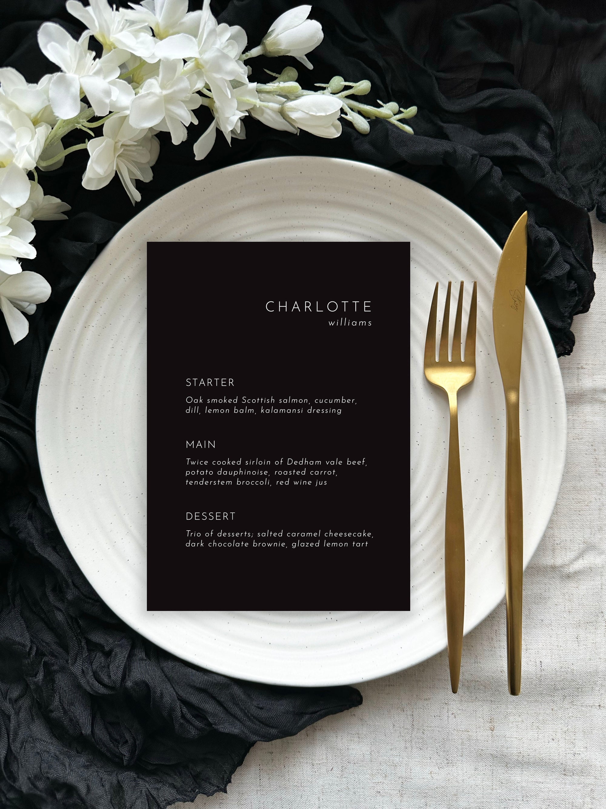 Includes personalisation of your menu with your menu (either a set menu or personalised menus per guest) and guest names.