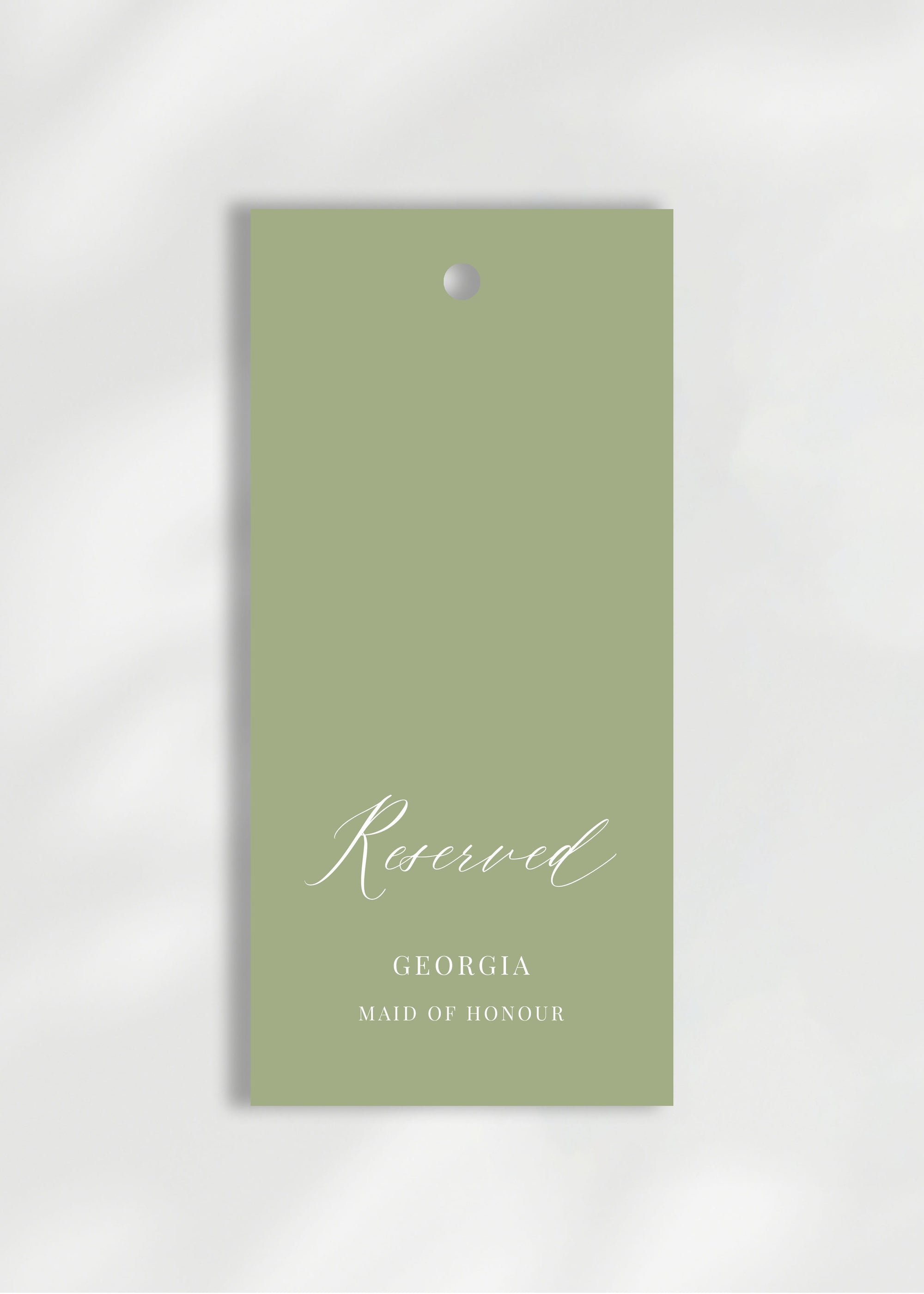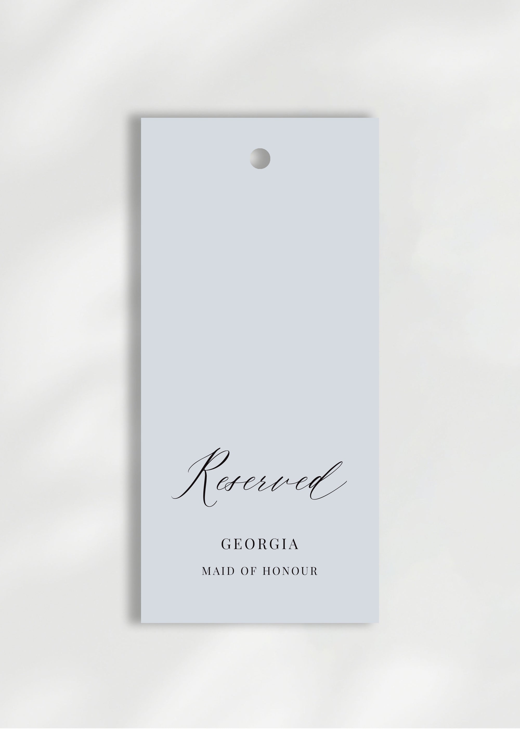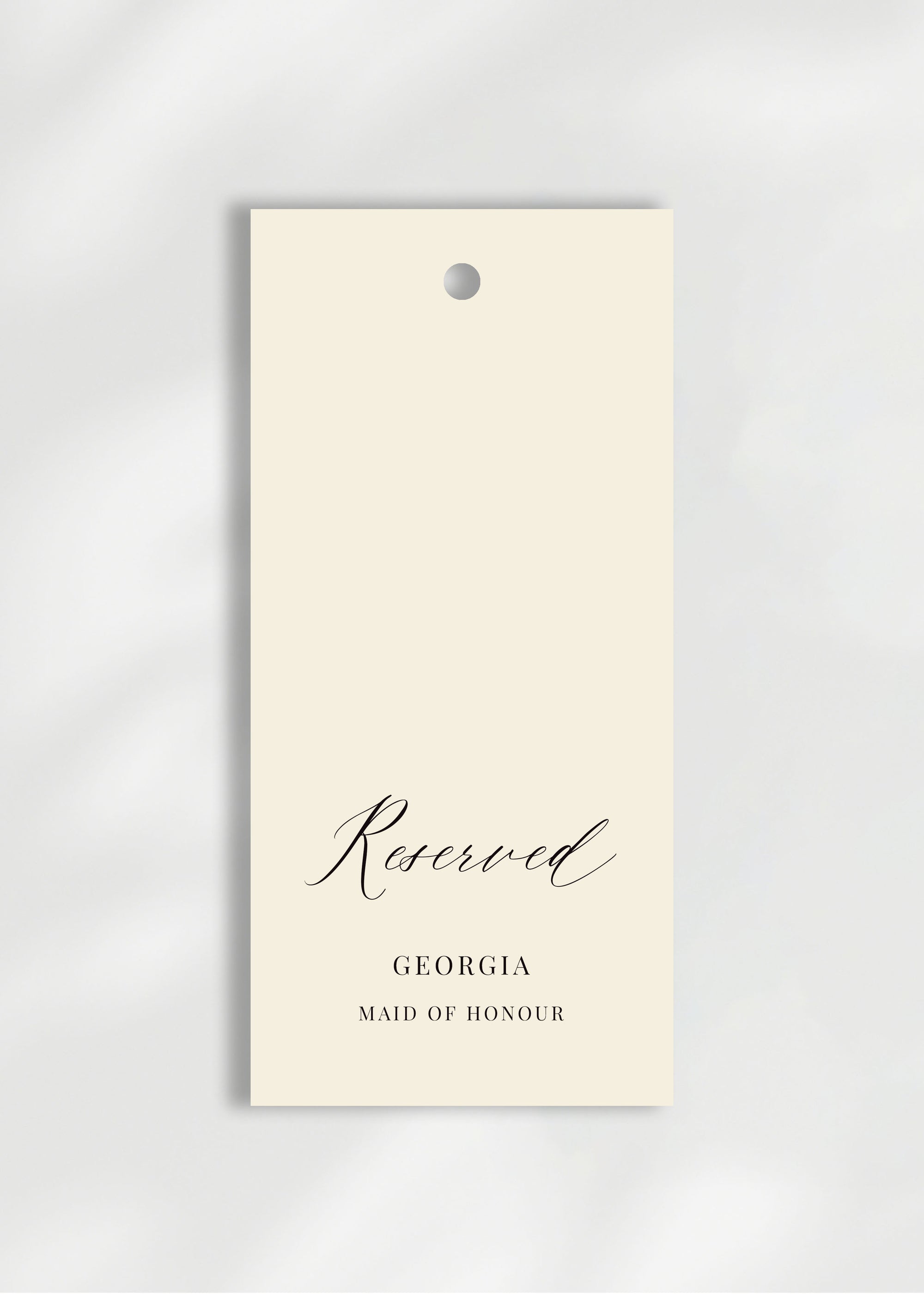 Ensure your ceremony seating is perfectly organised with our personalised reserved ceremony seat tags. Printed on our signature 300gsm textured card, these elegant tags are designed to be tied to chairs with ribbon, reserving special seats for the wedding party. A must-have for any well-coordinated wedding, these seat tags add a sophisticated touch while ensuring your guests know exactly where to sit.