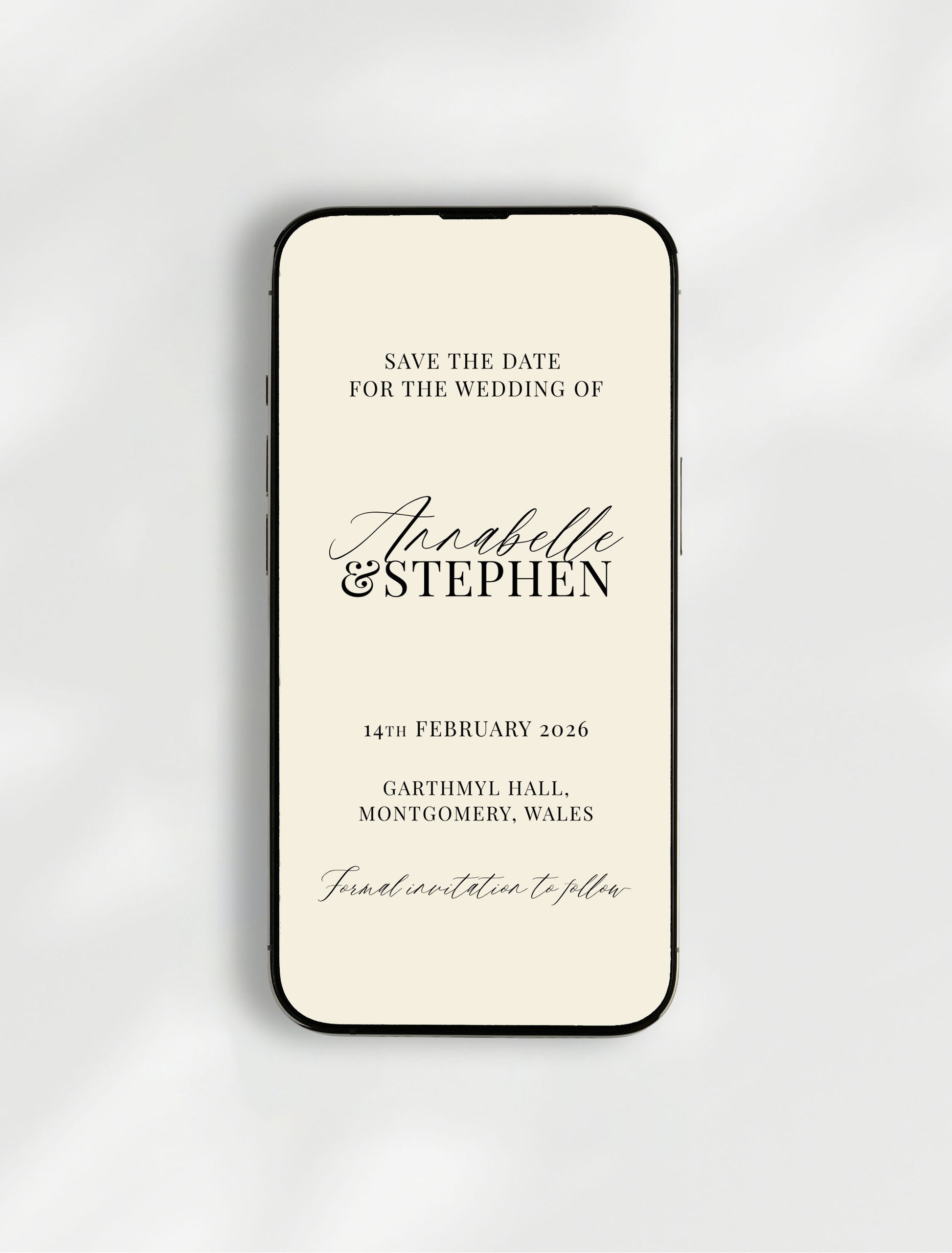 Calling all DIY couples! If you’re looking for a stylish and modern way to announce your wedding day our editable digital save the date template is perfect for you. Featuring a timeless design and fully customisable layout, you can personalise every detail in minutes. Edit directly from your phone or desktop (no design skills needed) using an easy online editor. Personalise colours, wording and the layout to suit your wedding style, then download and send via WhatsApp, email or text.