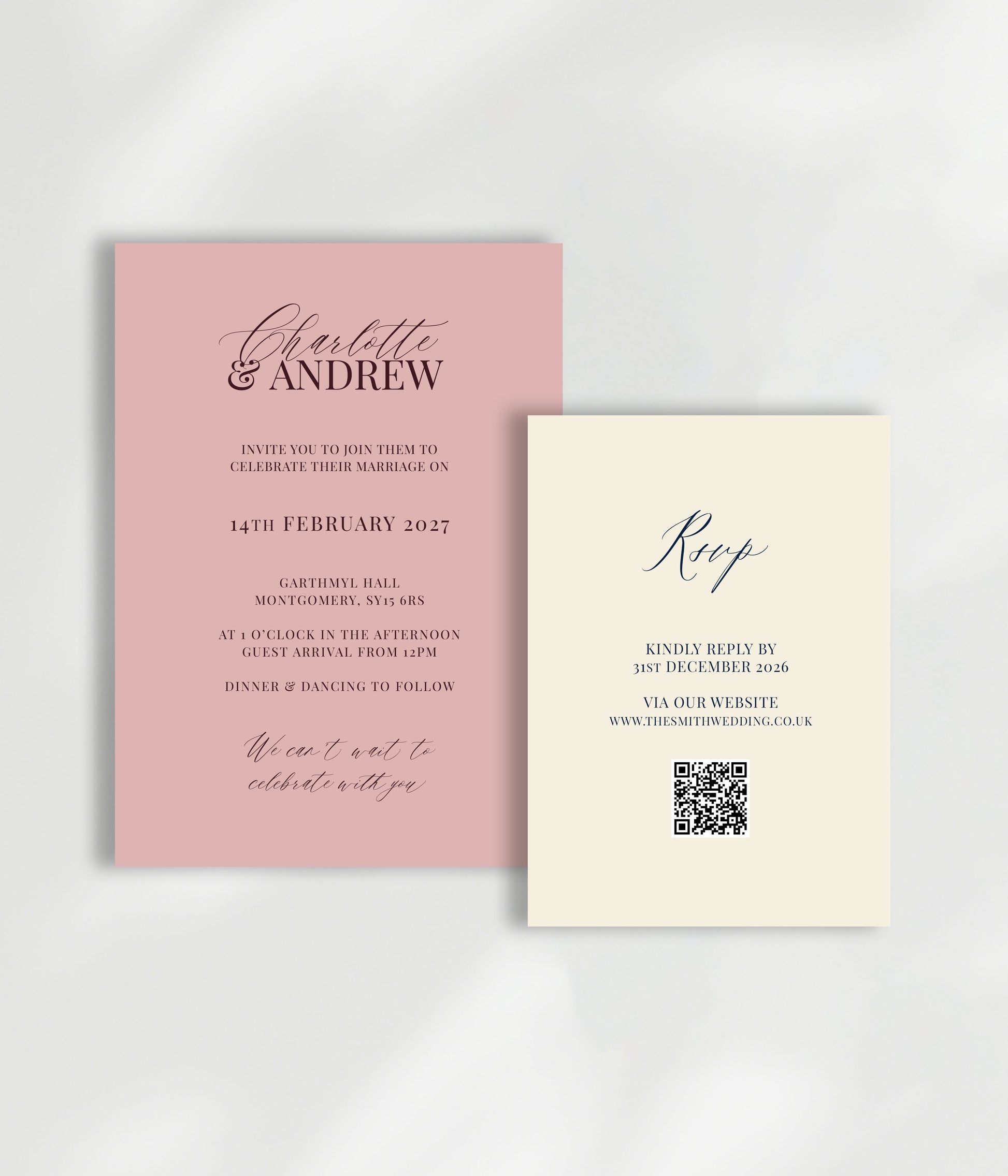 This two card suite contains an invitation card, an additional insert card and a clip. You will receive a digital copy to approve prior to printing. Your invitations will arrive unassembled.