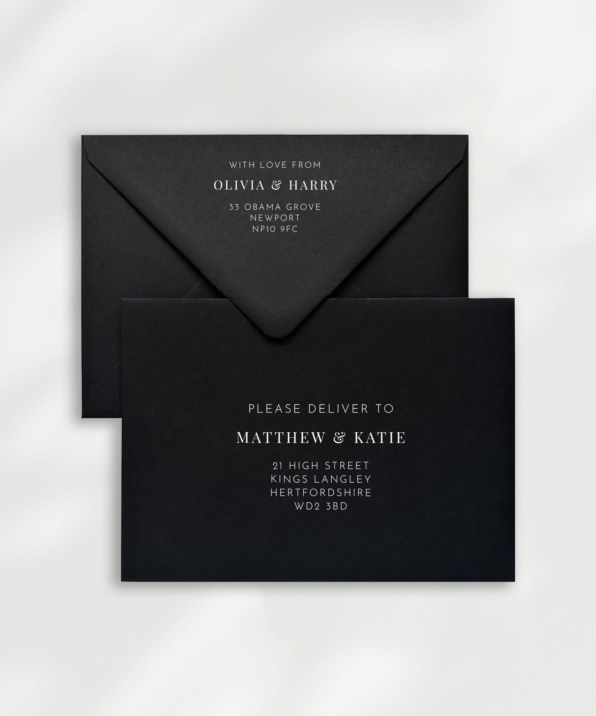 Elevate your envelopes with our guest name and address printing service; perfect for your wedding invitation and RSVP stationery. This listing includes envelopes and address printing.