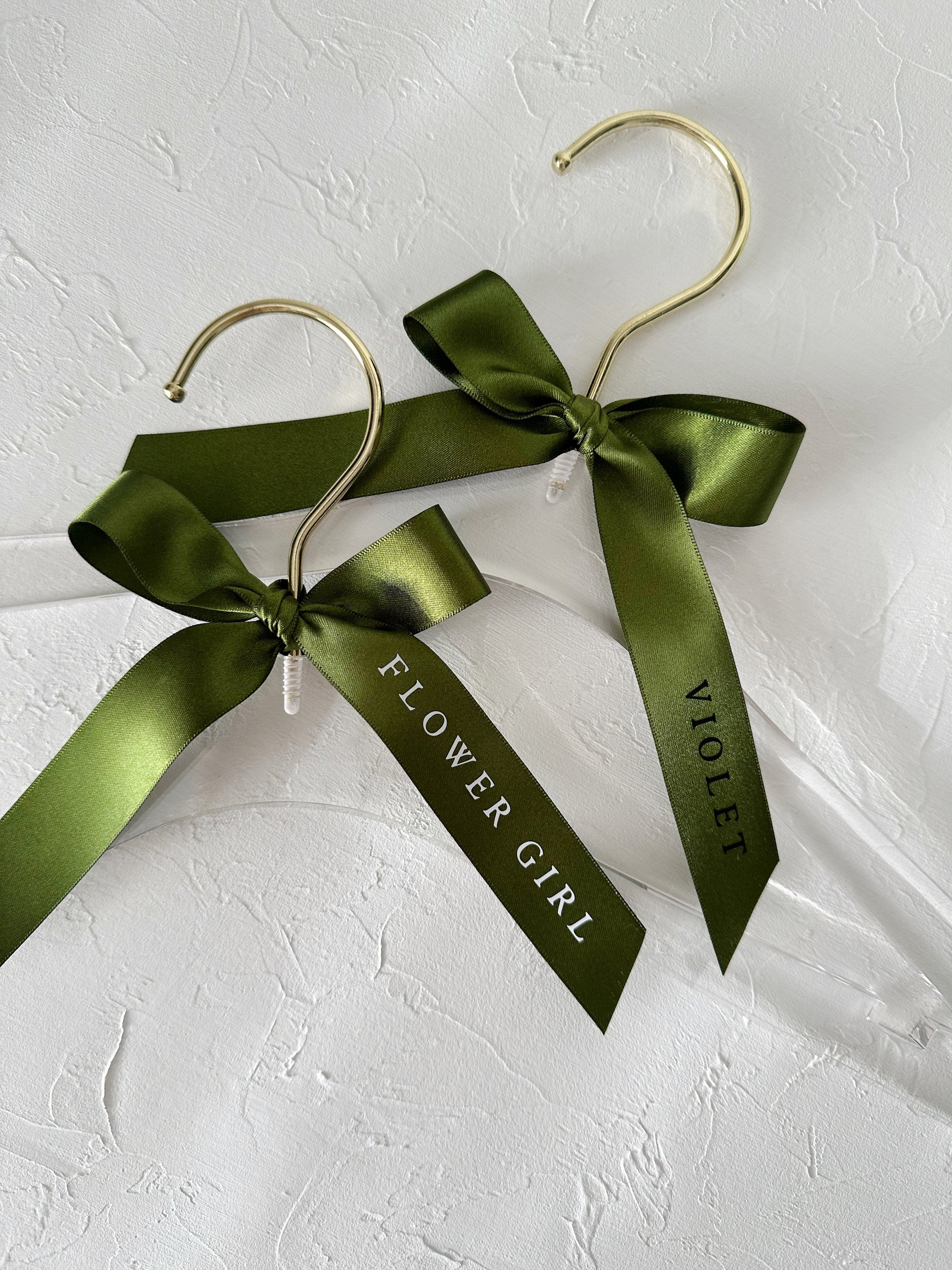 Add a touch of elegance to your bridal party hangers with our personalised name ribbons. Crafted from luxurious double sided satin, each ribbon is custom printed with your chosen name or title, offering a cost effective version to traditional personalised hangers.