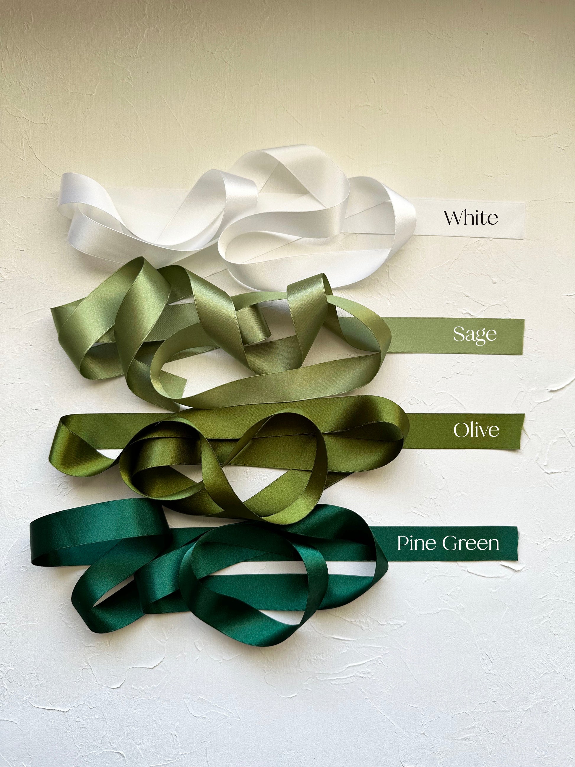 Each ribbon will come supplied flat (not tied) with your guests name on. Length measures 2.5cm x 55cm and can be cut to size. Ribbon samples are for colour reference only and will be blank (no name).